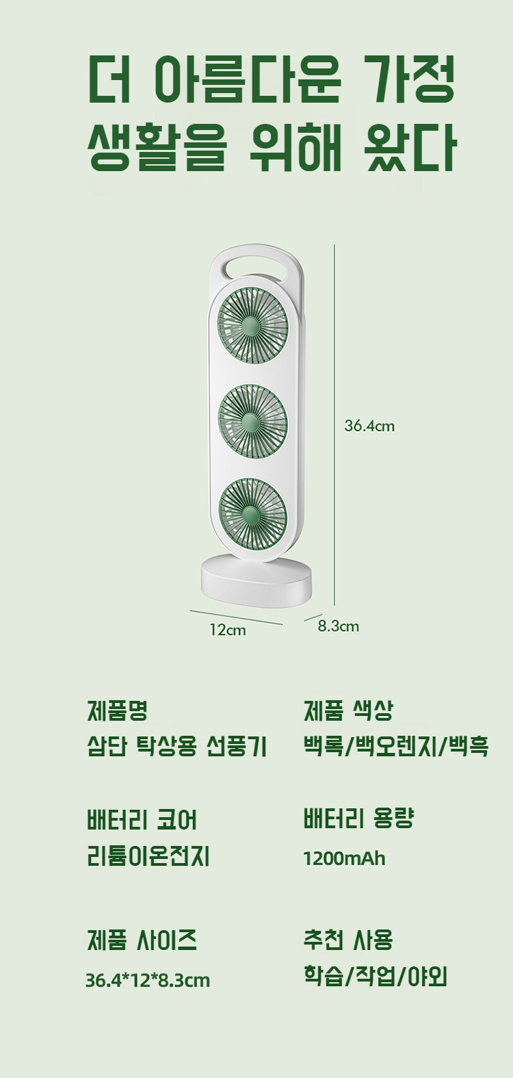 탁상용 삼단 선풍기 Usb 충전 대풍력 탁상용 초광각 선풍기