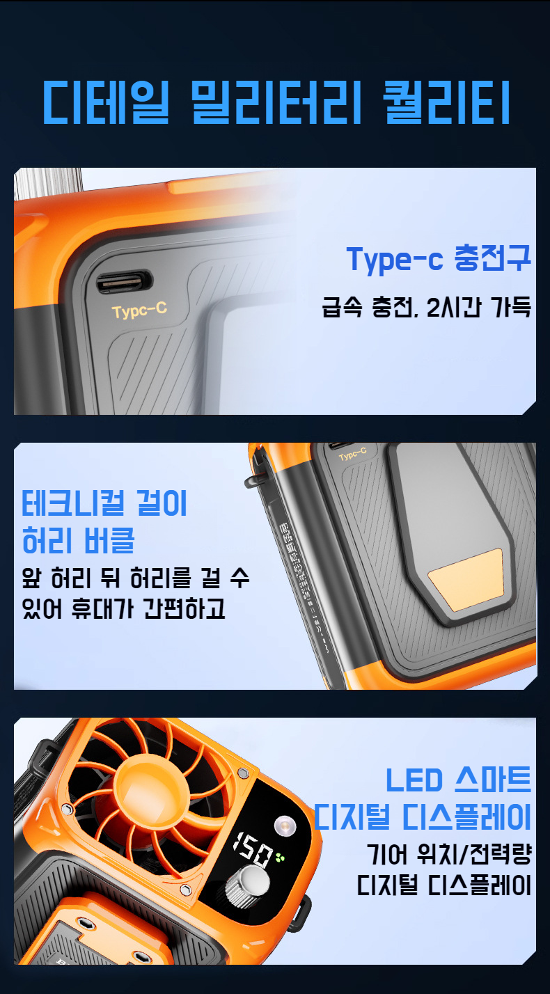 허리걸이 직강선풍기 휴대용 충전식 소형선풍기 공사장 허리걸이 선풍기 고풍력 고속 휴대용 캠핑 소형선풍기