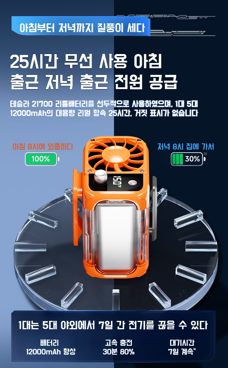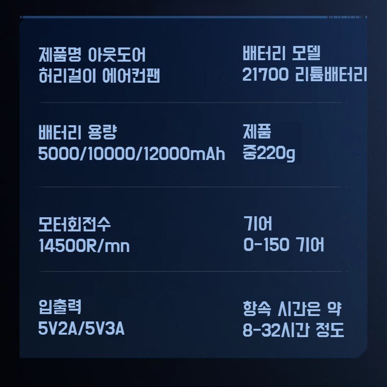 허리에 착용 가능한 경량 선풍기 디테일